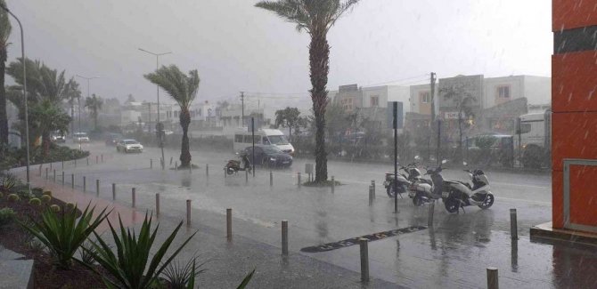 Bodrum’da sağanak yağış etkili oluyor