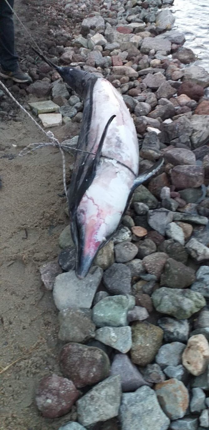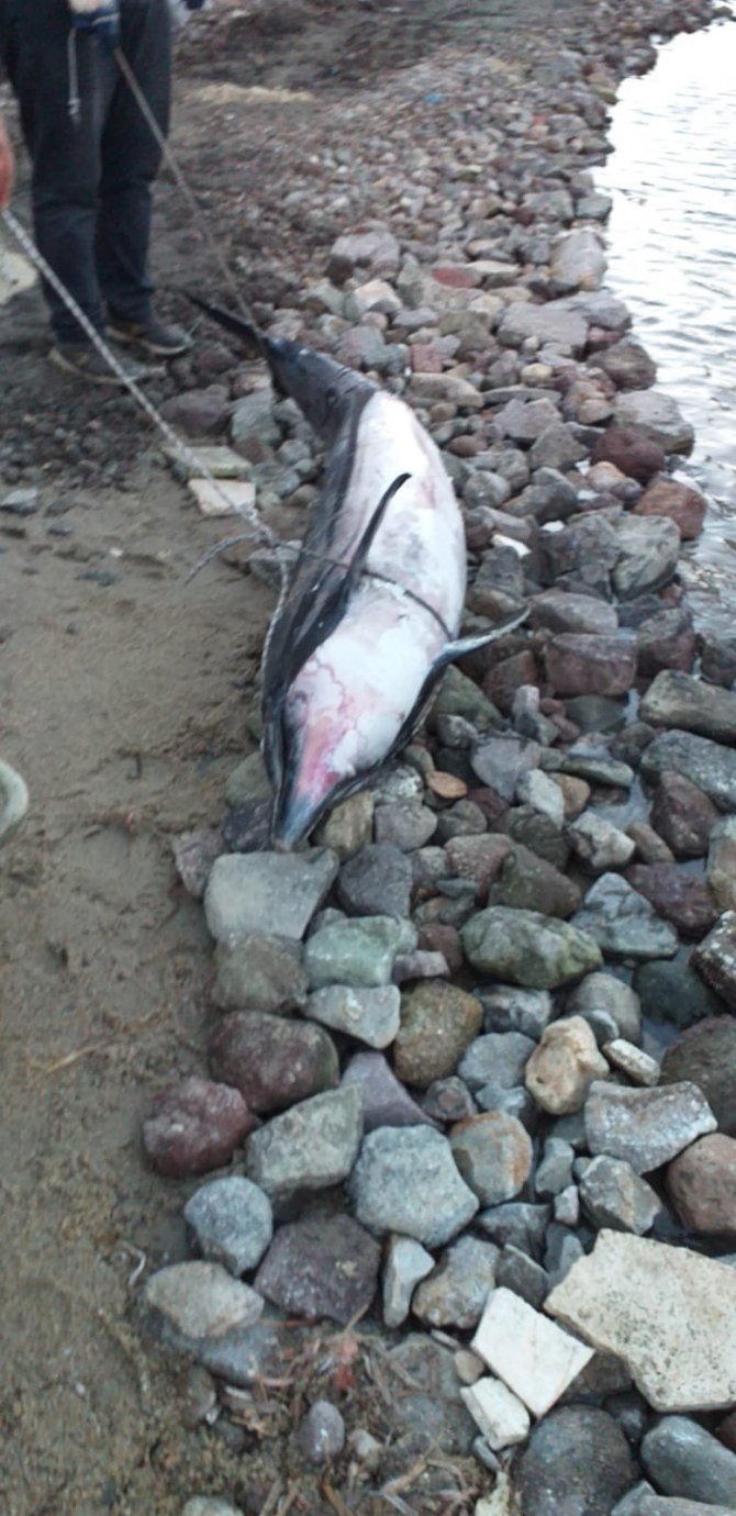 Yahşi Mahallesi Kargı Sitesi sahilinde yürüyüş yapan vatandaşlar ölü yunus balığı ile karşılaştı. Vatandaşların Bodrum Belediyesine haber vermesi üzerine temizlik işleri ekipleri olay yerine geldi. Yaklaşık 1,5 metrelik yunus balığını sahilden alan ekipler uygun bir alana gömmek için götürdü.