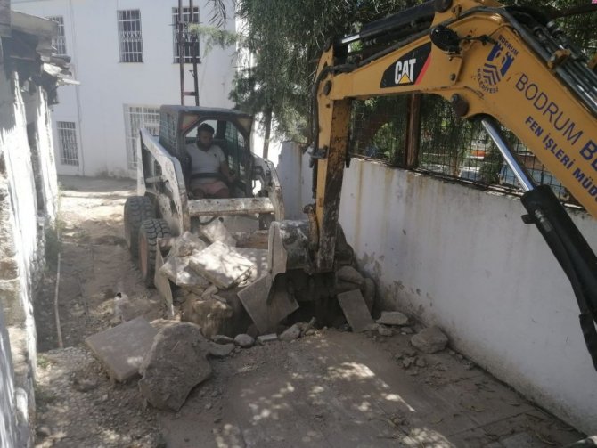 Bodrum Belediyesi tarafından su taşkınlarının önüne geçmek için başlatılan çalışmalar sokak sokak devam ediyor.