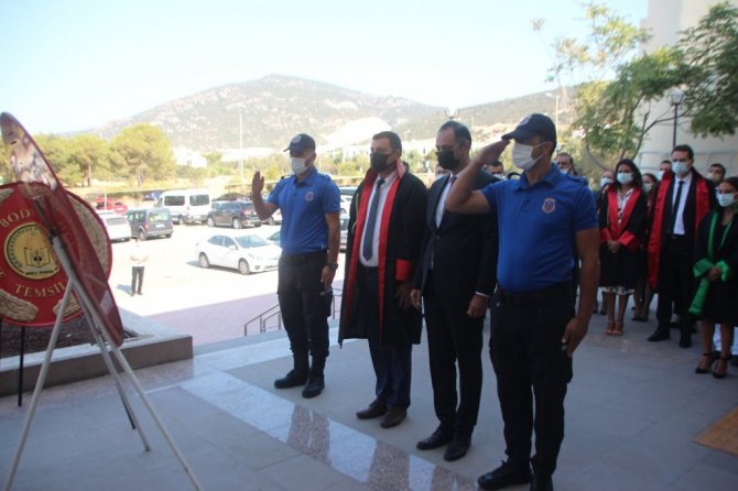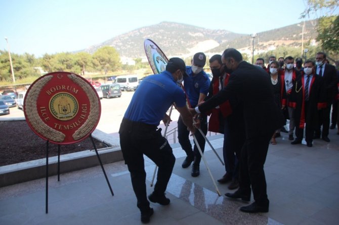 Bodrum Adliyesi'nde gerçekleştirilen törene Bodrum Cumhuriyet Başsavcısı Şükrü Arslan, Adalet Komisyonu Başkanı Serhat Işık, Muğla Barosu Bodrum Temsilcisi Cavidan Karaöz Özyiğit, hakimler, savcılar, avukatlar ve adliye personeli katıldı. Atatürk Anıtı'na çelenklerin sunulmasının ardından saygı duruşunda bulunulup İstiklal Marşı okundu.
