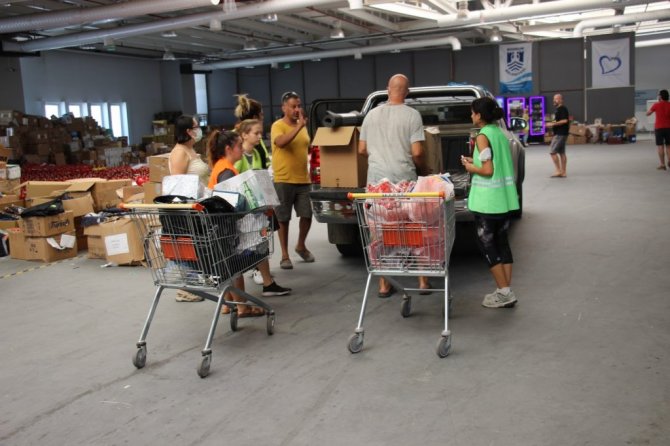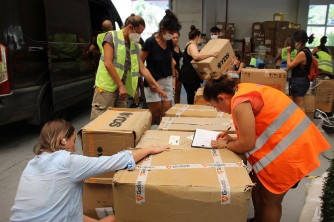 Muğla'nın Bodrum ilçesinde iki gün önce söndürülen yangında seferber olan vatandaşların gönderdiği yardım malzemeleri, Muğla'da 3 noktada devam eden yangınlar için gönderilmeye devam ediliyor.