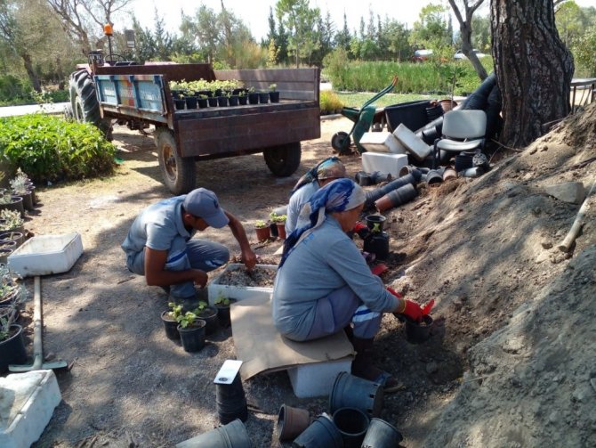 Yetiştirilen bitkilerin istenilen büyüklüğe geldiğinde çevre düzenlemelerinde kullanıldığını belirten Park ve Bahçeler Müdürü Çağla Turhan da, "İlçe genelinde yaptığımız peyzaj çalışmalarında kendi yetiştirdiğimiz bitkileri kullanmaya özen gösteriyoruz. Bu sayede maddi olarak tasarruf sağlarken, sıcağa dayanıklı ve fazla su istemeyen bitki ve çiçeklerimizle ilçemizde uygun bitkilerin ekimi ve dikimi ile de tasarruf sağlamış oluyoruz " dedi.