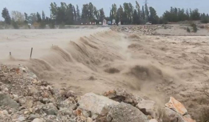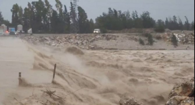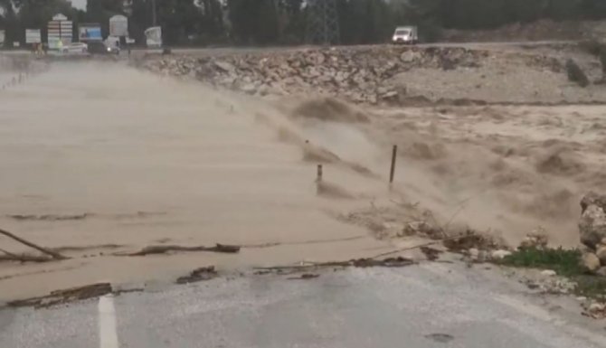 Meteoroloji Genel Müdürlüğü'nün "kırmızı kodla" uyardığı Antalya'da aşırı yağış ve fırtına etkisini devam ettiriyor. Aşırı yağış nedeniyle suların yükseldiği Boğaçayı üzerindeki bir köprü tehlike oluşturduğu için öğle saatlerinde trafiğe kapatılmıştı. O köprünün üzerinden bir süre sonra sular aşmaya başladı. Hurma-Çakırlar yolunu birbirine bağlayan köprü tamamen sular altında kaldı.