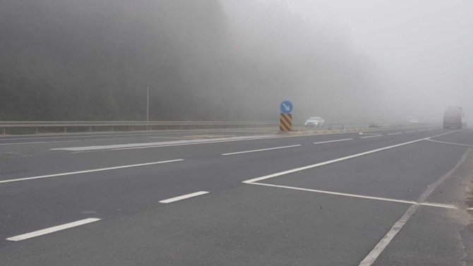 Sis nedeniyle görüş mesafesinin yer yer 30 metreye kadar düştüğü Bolu Dağı'nda sürücüler takip mesafelerini korumaları ve hız yapmamaları konusunda ışıklı tabelalar ve polis ekipleri tarafından uyarılıyor.