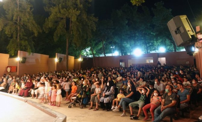 Menteşe Belediye Tiyatrosu, İzmir'de Bornova Belediyesi'nin konuğu olarak Ayfer Feray Açık Hava Tiyatrosu'nda sahnelenen "Tüylü ve Havhav'ın Maceraları" adlı çocuk tiyatrosu ile Bornovalıları güldürdü.