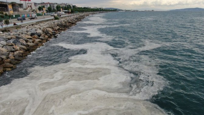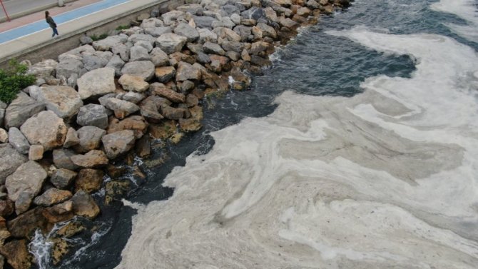 Özellikle son aylarda Marmara Denizi ve çevresinde oluşan deniz salyası yoğunlaşmaya devam ediyor. İstanbul sahillerinde yoğunluğunu artıran deniz salyası, yoğun koku ve çevre kirliliğine neden oldu. Marmara Denizi'nde sıklıkla görülen ve deniz salyası olarak bilinen müsilaj, deniz canlılarına zarar verirken balıkçıların da ağlarına yapışarak zorluk yaşatıyor. Deniz salyasının yoğun olduğu alanlardan Bostancı Sahili'ndeki son durum, su altı kamerası ve drone ile görüntülendi.