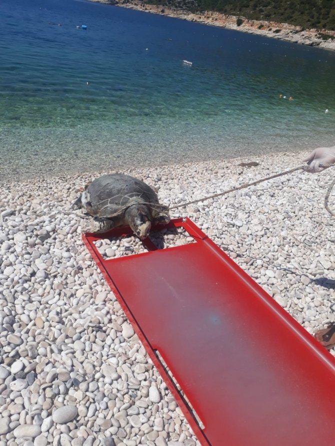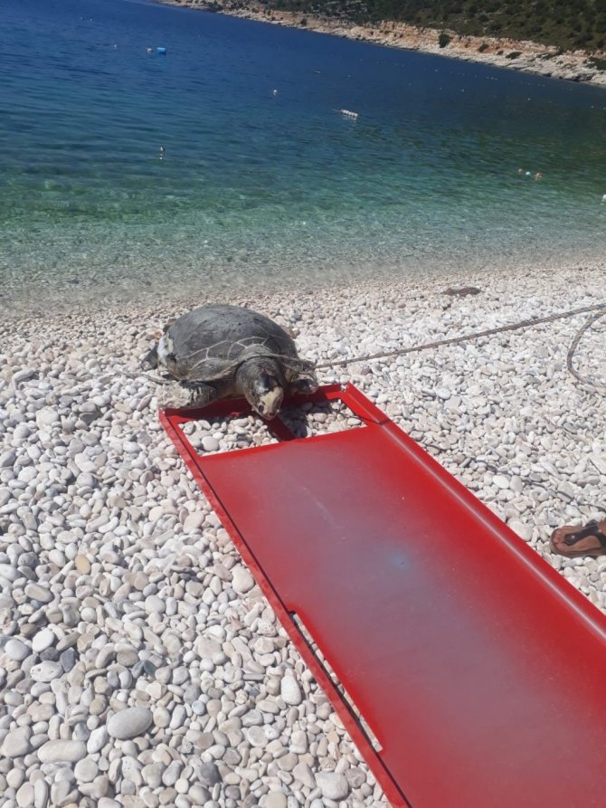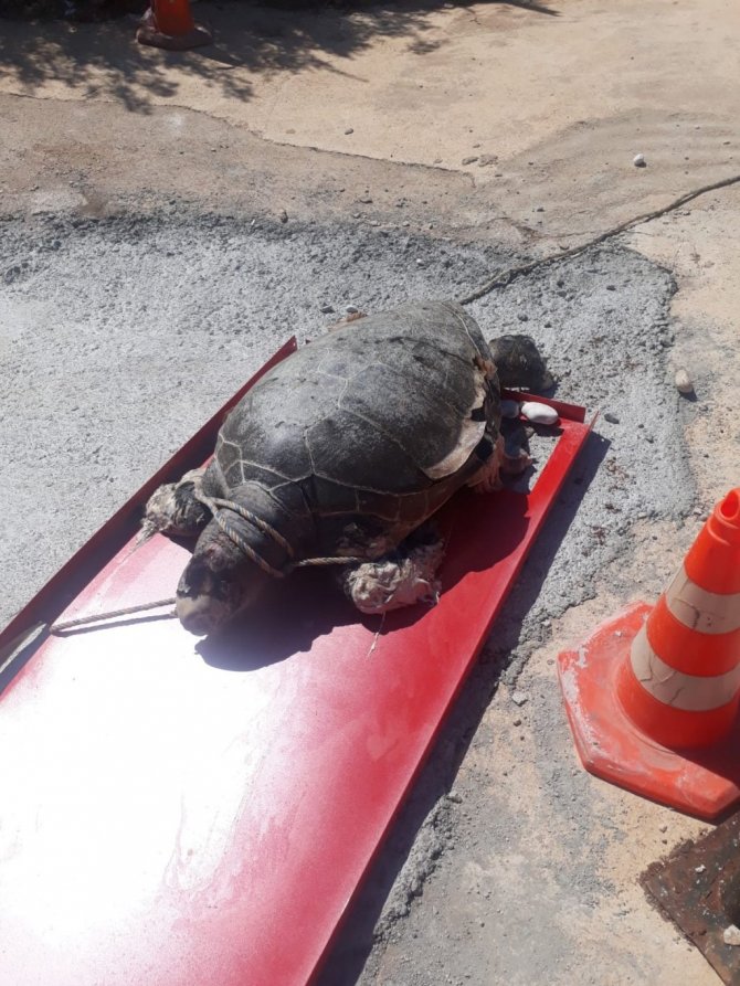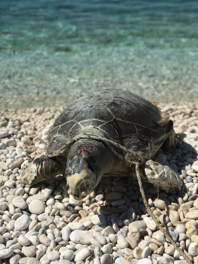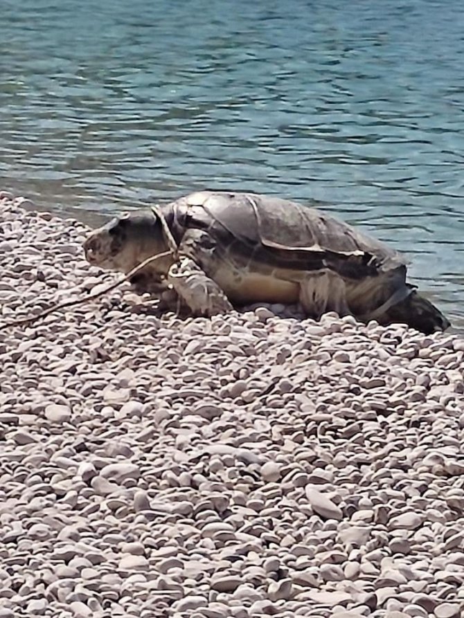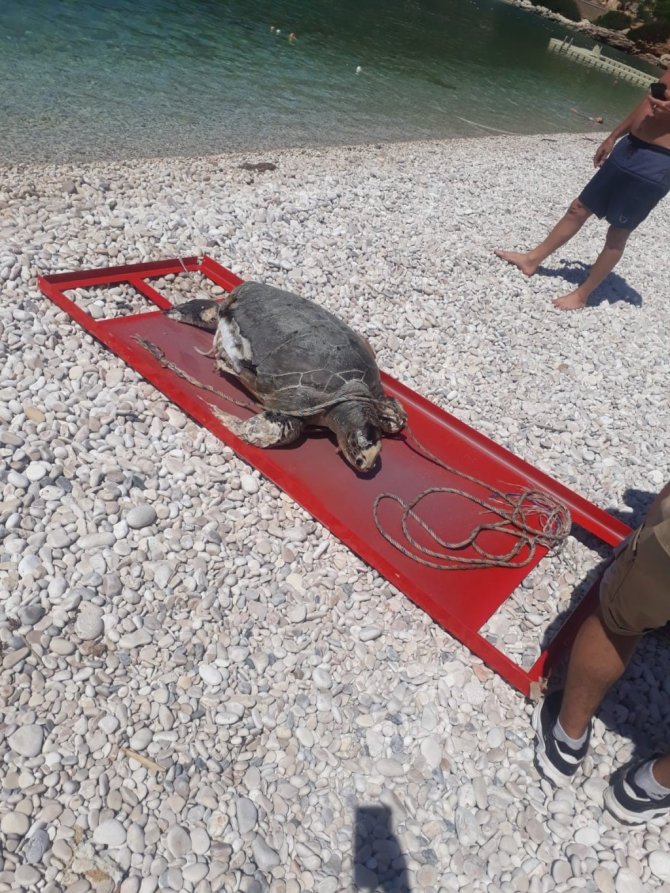 Boynuna ve ayaklarına halat dolanan caretta caretta telef oldu