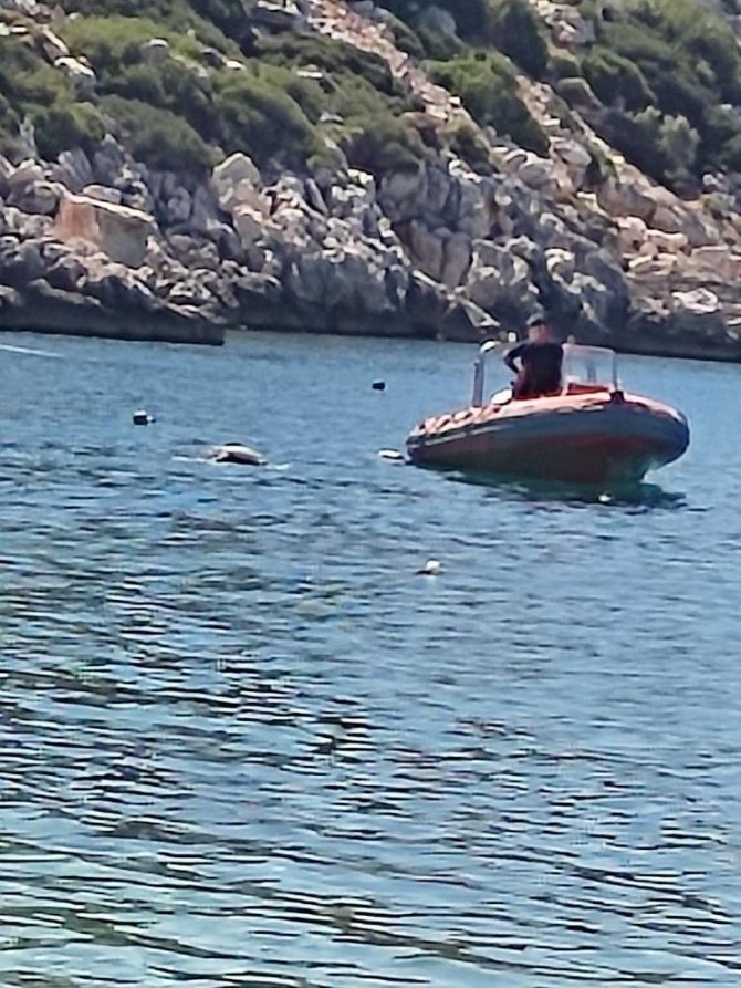 Antalya'nın Finike ilçesindeki Gökliman plajında öğle saatlerinde denize giren vatandaşlar, denizin yüzeyinde boynuna ve ayaklarına halat dolanmış bir...