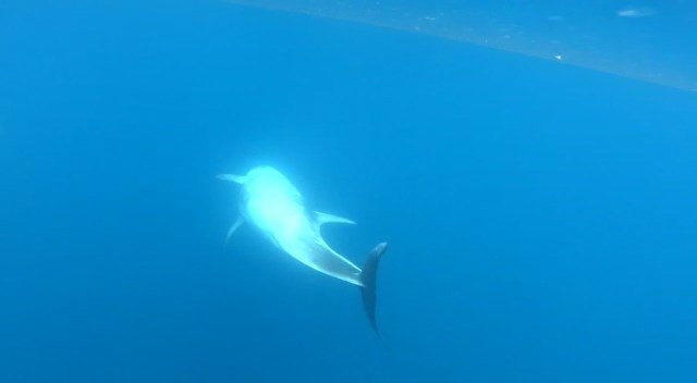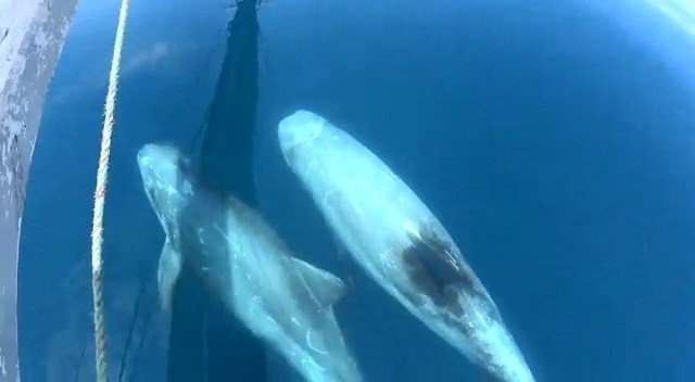 Zıpkın ile balık avı milli sporcusu Selim Konya, Gökçeada ilçe açıklarında yaptığı kılıç balığı avcılığı sırasında gördüğü boz yunus balıklarını kamerasıyla kayıt altına aldı. Tekneyle yarışan boz yunus balıklarının oyunları ve cana yakın tavırları güzel görüntüler oluşturdu.
