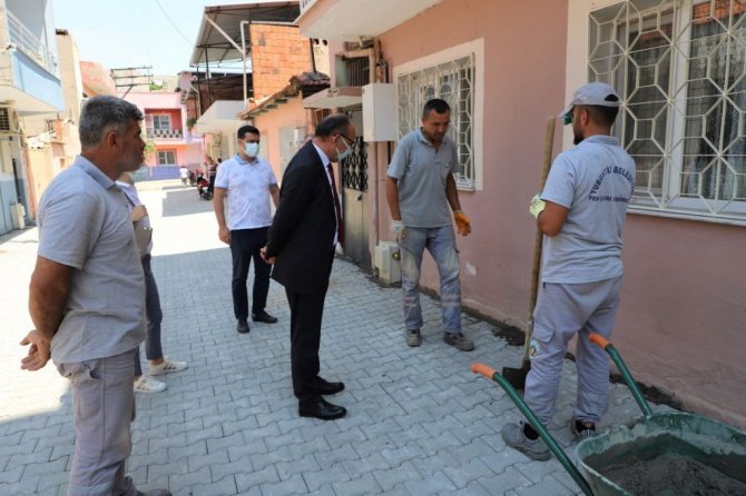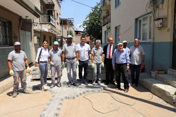 Turgutlu Belediye Başkanı Çetin Akın ve Başkan Yardımcıları Fırat Honaz, Evren Erbaş Ser, Bozkurt Mahallesindeki üç sokakta sürdürülen yol yenileme çalışmalarını inceledi.