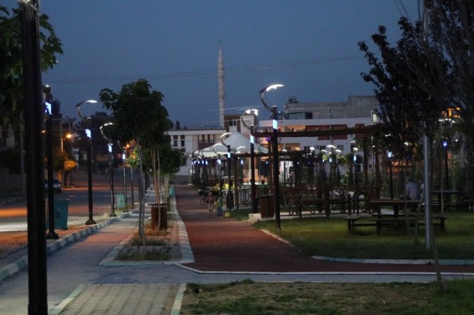 Yeşilova mahallesine yapılan parkta, gündüz kadar geceleri de çocuklar gönül rahatlığı ile bisiklet sürmenin keyfini çıkarıyor.