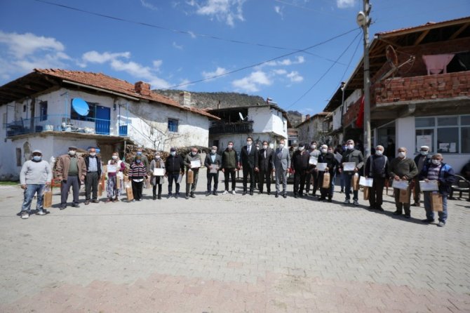 Mahalle meydanında 25 aileye sertifikaların dağıtımının ardından Demirci Orman İşletme Müdürü Tayfun Doğan köylüler ile birlikte menengiç sahalarını gezerek incelemelerde bulundu.