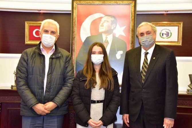 Başkan Bakkacıoğlu Senanur Kale'ye ayrıca ulusal bir yarışmada ilçe başarıyla temsil ettiği için teşekkür ederek hediye takdiminde bulundu.