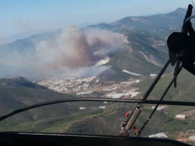 Edinilen bilgiye göre, ilçeye bağlı Gözce Mahallesinde sera ve yerleşim yerlerine yakın bölgedeki ormanlık alanda sebebi henüz bilinmeyen bir nedenle yangın çıktı. Kısa sürede büyüyen yangına havadan ve karadan müdahale başlatıldı. Yangına ilk etapta 2 uçak, 7 helikopter, 3 dozer ve 33 arazöz ile müdahale edilirken, rüzgar nedeniyle söndürme çalışmalarından zaman zaman güçlük yaşandığı bildirildi.