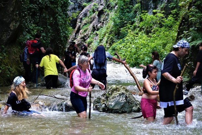 Serindere'ye grup olarak geldiklerini söyleyen Gizem Emre ise, "Düşe kalka yol aldık. Bazen su boyumuzu aşmaya yakındı. Manzara harika, çok güzeldi" diye konuştu.