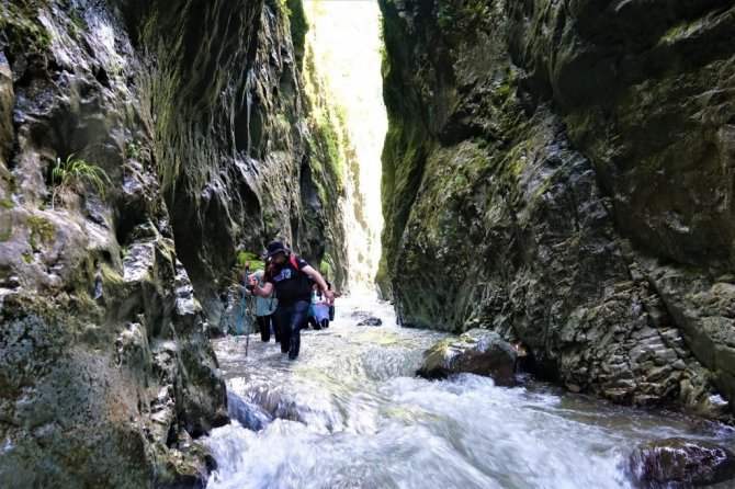 KOCAELİ (İHA) – Kocaeli'nde bulunan onlarca kanyondan birisi olan Serindere, her gün yüzlerce adrenalin tutkununu ağırlıyor. Yüksek debiyle akan buz gibi suda yürümekte zorlanan adrenalin tutkunları, zorlu parkurları tek tek geçiyor.