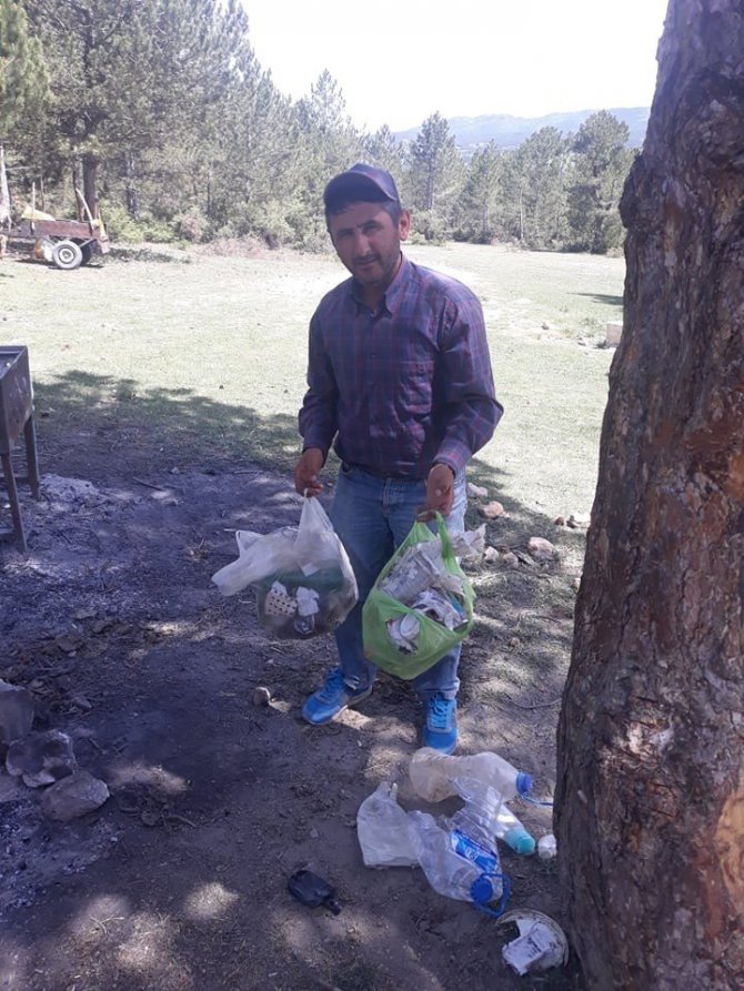İnsanların doğaya zarar vermesinden çok rahatsız olduğunu belirten 41 yaşındaki Ahmet Berber, "Ben 20 yıldır bu dağlarda çobanlık yaparım. Son beş yıldır dağlarda piknik yapanlar yediklerinden arta kalanları ve çöplerini toplamıyorlar. Ben elimden geldiğince topluyorum ve kağıt olanları kontrollü şekilde yakıyorum. Şişe ve diğer atıkları poşetleyip araziden dönüşte her gün götürüyorum. Benim tüm vatandaşlarımızdan ricam doğaya sahip çıkmalarıdır. Bu arazilerde bizler hayvanlarımızı otlatıyoruz. Özellikle cam şişe atıkları yaz aylarında yangına neden olabilir ifadelerini kullandı.