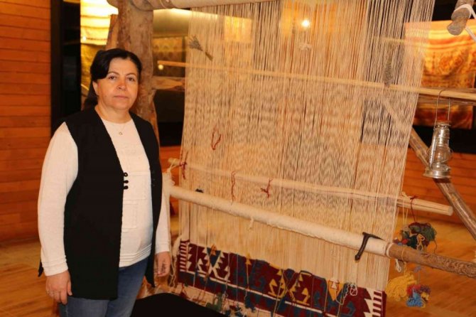 Türkiye'nin ilk ve tek uygulamalı kilim müzesi olan Sivrihisar Kilim Müzesi'ne gelen ziyaretçiler için hazırlanan kilim tezgahında, binlerce kişinin emeğiyle...