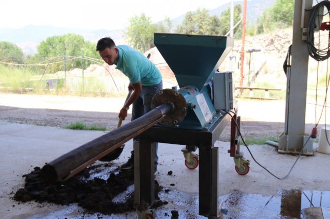Eskişehir'de zeytinyağı üretimi yapan Emre Can, yağ yapımından arta kalan çekirdek ve posanın atık olmasını engelleyerek doğal kömür üretti.
