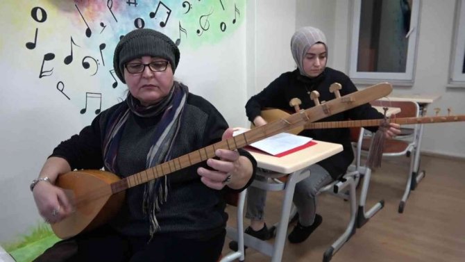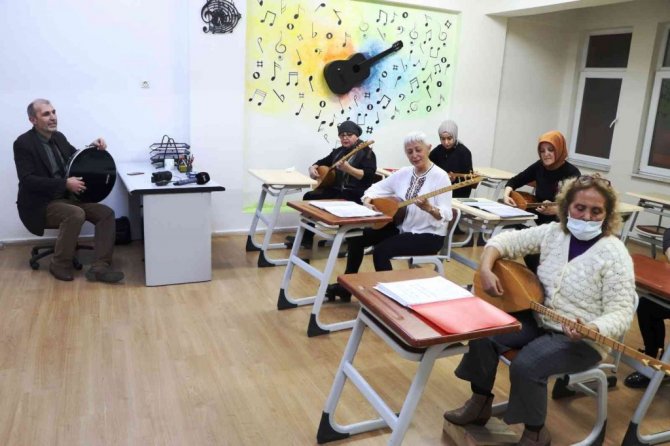 67 yaşında bağlama kursuna giden Hayriye Bayramoğlu, "Benim bağlama çalmak çocukluk aşkımdı. O zamanlar imkansızlıklardan dolayı öğrenmek nasip olmadı. Ali Rıza hocamla birlikte epey bir yol kat ettiğimi düşünüyorum. Buraya gelmekten dolayı çok mutluyum. En güzel vaktim burada geçiyor" diye konuştu.