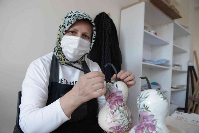 Osmangazi Belediyesi Meslek Edindirme Kursları (OSMEK) bünyesinde açılan dekoratif ahşap süsleme kursundan faydalanan kursiyerler, hünerli elleriyle peçeteleri...