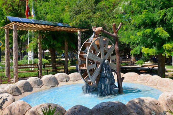 Süs havuzları içinde bulunan değirmenleri döndürüyor
