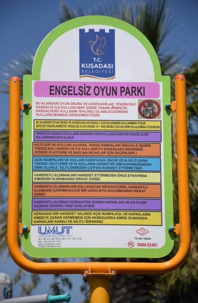 Yaşama geçirdiği temalı parklar ile dikkat çeken Kuşadası Belediyesi, engelli çocukların aileleri ve arkadaşları ile birlikte keyifli vakti geçirebilmesi için yeni yaptığı parklara "engelsiz oyun grupları" yerleştirmeye başladı.
