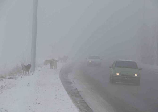 Şehri adeta esir alan sis görüş mesafesini azalttı. Sürücüler trafikte yavaş ve kontrollü seyretti.