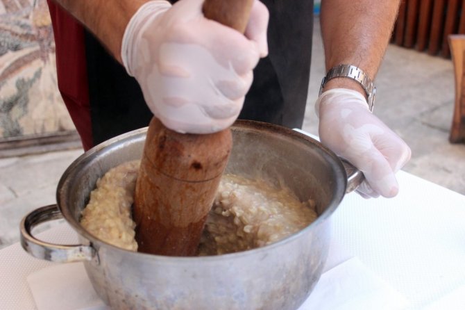 Unesco Gastronomi Evi mutfak şefi Süleyman Demirel, reçetesinin bozulmadan günümüze kadar gelen bir yemek olduğunu belirterek ,"Adına farklı bölgelerde hrisi, keşkek ve aşur denilen geçmişi Osmanlı dönemine dayanan yemeği yaptık. Sadece buğday, et ve kuyruk yağı ile oluşan hrisi dediğimiz yemek burada Alevi vatandaşlarımızın hiç reçetesi bozulmadan yaptığı bir yemektir. Antakya bölgesinde salça konularak yapılıyor. Üzerine eklenen malzeme de tereyağı, ceviz ve kimyondur. Bazılarına nohut da konulmaktadır. Hrisi bayramlarda dana eti ile yapılmaktadır. Uzun süre pişme süresi vardır. Antakya bölgesinde ise yaygın olarak gerdan eti kullanılmaktadır. İkisinin ortak özelliği ise bakır kazanlarda pişmesi ve tokmak ve tahta kaşıklarla dövülmesidir" dedi.