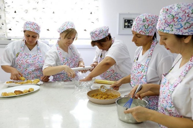 Kurs günleri büyük bir heyecan, tatlı bir telaşla merkeze gelen kursiyerler Halk Eğitim Merkezi öğretmenlerinin kontrolünde günlük menülerini belirleyerek anlamlı projeleri için ilk adımı atıyor. Keyifle işe koyulan güzel yürekli kursiyerler, maharetli elleriyle gönül ve güç birliği yaparak tencere yemeklerinden tatlıya uzanan lezzetli bir sofra ortaya koymak için var gücüyle çalışıyor.