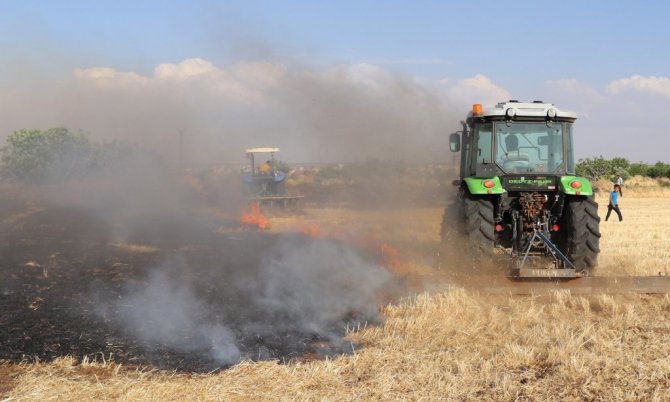 Araban'da buğday ekili alanda çıkan yangın, çiftçilerin traktörleriyle yaptığı müdahale ile büyümeden söndürüldü.