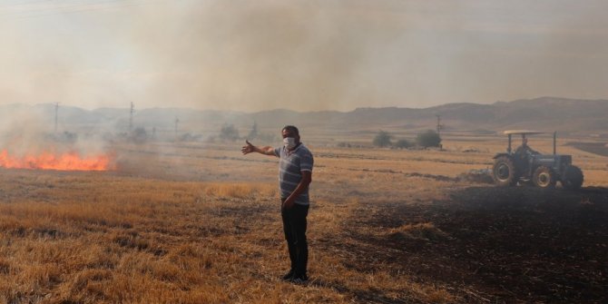 Buğday tarlasındaki yangın çiftçilerin müdahalesiyle söndürüldü