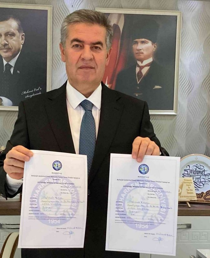 Buharkent Belediye Başkanı Mehmet Erol, ilçe genelindeki evlerin jeotermal ile ısıtılması için hayata geçirdiği projenin üye kayıt formunu ilk imzalayan kişi oldu.