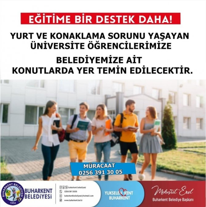 Üniversitelerin yüz yüze eğitime geçme kararıyla birlikte, derslerin başlamasına sayılı günler kala ülke genelinde olduğu gibi Aydın'da da öğrenci hareketliliği başladı. Aydın Adnan Menderes Üniversitesi'ni (ADÜ) kazanan veya okuluna devam eden öğrenciler yavaş yavaş Aydın'a dönmeye başlarken öğrencilerin kalacak yer bulma arayışları da sürüyor. Pandemi süreci ile birlikte ülke genelinde olduğu gibi Aydın'da da ev kirası, yurt ve apart fiyatlarında ciddi artış yaşandı. Bütçelerine uygun kalacak yer bulamayan öğrenciler de yaşanan zamlardan dolayı adeta isyan etti. Zor durumda kalan öğrenciler sosyal medya üzerinden seslerini duyurmaya çalışırken Buharkent Belediyesi aldığı karar ile konaklama sorunu yaşayan öğrencilere destek olacağını duyurdu. Belediyeye ait konutlarda öğrencilere yer temini yapılacağını duyuran Buharkent Belediye Başkanı Mehmet Erol; "Buharkent Meslek Yüksek okulumuzda eğitim ve öğretim görecek, yurt ve konaklama ihtiyaçlarında sıkıntı yaşayan öğrencilerimize bu kapsamda belediyemize ait konutlarda yer temin edilecek olup bunun yanında her türlü sorunlarında öğrencilerimizin yanında olduğumuzun bilinmesini istiyoruz" dedi.
