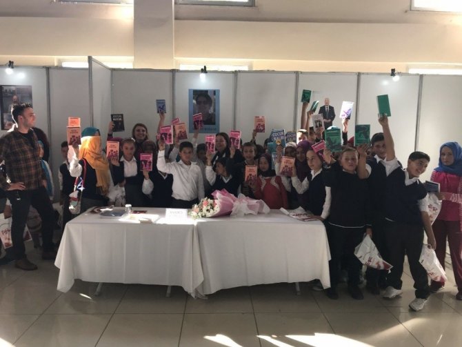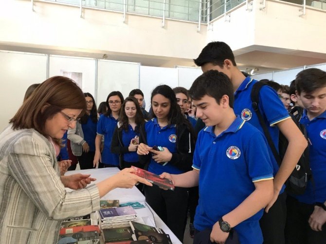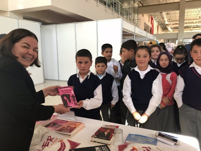 Vakıf Başkan Yardımcısı Reyhan Altıntaş ile gönüllü üye Tuba Görgülü Gökdede ise fuarı gezen öğrencilere kitap hediye etti. Kitapları alan öğrenciler mutlu oldu.