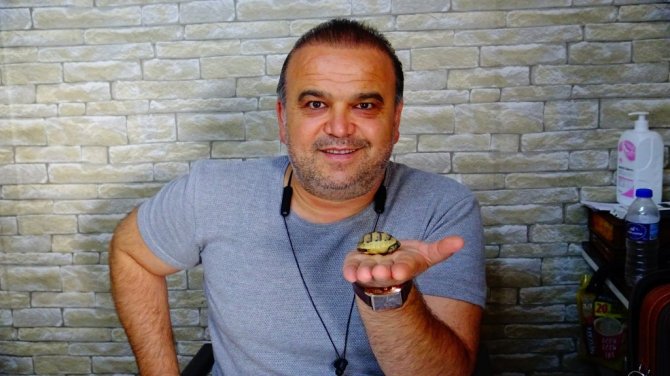 Bulduğu ceviz büklüğündeki kaplumbağa yavrusunu görevlilere teslim etti