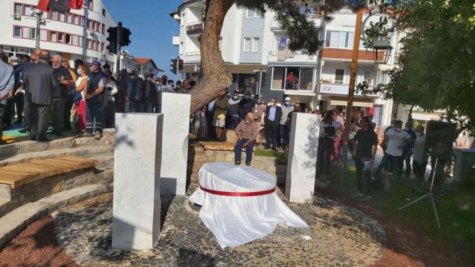 Başkan Uçar'ın ardından Heykeltıraş Elbruz Denge de fikir anıtının yapımını ve anlatılmak istenen düşünceyi vatandaşlarla paylaştı.