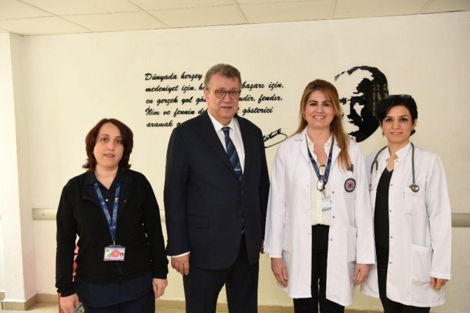 Ege Üniversitesi Rektörü Prof. Dr. Necdet Budak, Tanya Koleva’yı ziyaret ederek sürdürülen tedavi konusunda bilgi aldı. Ege Üniversitesinin Türkiye’nin en önemli sağlık merkezlerinden birisi olduğunu ifade eden Rektör Prof. Dr. Budak, ‘‘Hastanemiz pek çok konuda olduğu gibi ‘Kemoterapi Desensitizasyon tedavisinde de bir referans merkezi. Ülkemizin gelecek hedefi olan sağlık turizminin bir parçası olarak komşu ülkelerden üniversitemize refere edilen yabancı hastalara da hizmet vermeye başlamanın gururunu yaşıyoruz. Üniversitemiz hastanesi sağlık turizmi için çok ciddi bir potansiyele sahip. Akademik kadromuz ve sağlık çalışanlarımızın donanımı çok iyi. Sunduğumuz sağlık hizmetindeki bu üst düzey standartların yükselmesi için fiziki imkânlarımızın da iyileşmesi gerekiyor. Onları da tamamladığımız zaman sağlık turizminde ciddi bir artış sağlayacağımıza inanıyorum’’ diye konuştu.