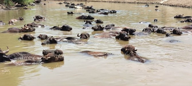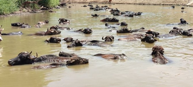 Karakütük köyünde çobanlık yapan Abdullah Özdemir, sıcakların artmasının mandaları olumsuz etkilediğini söyledi. Hayvanları serinletebilmek için günde iki defa Karasu Nehri'ne getirmek zorunda olduklarını belirten Özdemir, "Çevredeki köylerde yaklaşık 3 bin civarında manda var. Mandaları serinletmek için başka bir seçeneğimiz yok. Burada hava sıcaklığı 36 dereceye kadar yükseldi. Mandalarımız öğle 12.00 gibi suya giriyor, aşağı yukarı 2-3 saat suda kalıyor. Havalar çok sıcak. Akşam da 17.00'de bir saat suyun içerisine bırakıyoruz. Daha sonra hayvanları otlatıp köye götürüyoruz. Buradaki görüntüler her ne kadar Afrika'yı anımsatsa da burası Muş. Hayvanlar suya girerek hem hastalıklardan kurtuluyor hem de süt verimleri artıyor" dedi.