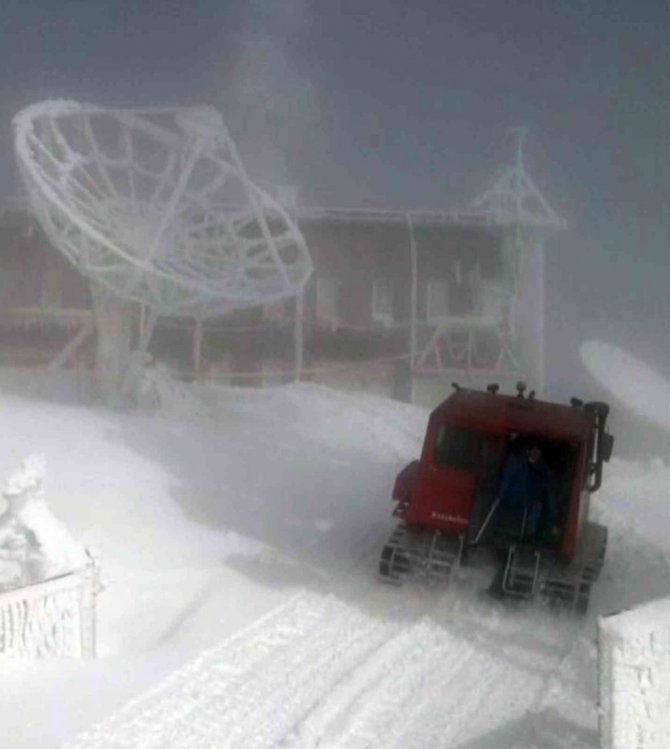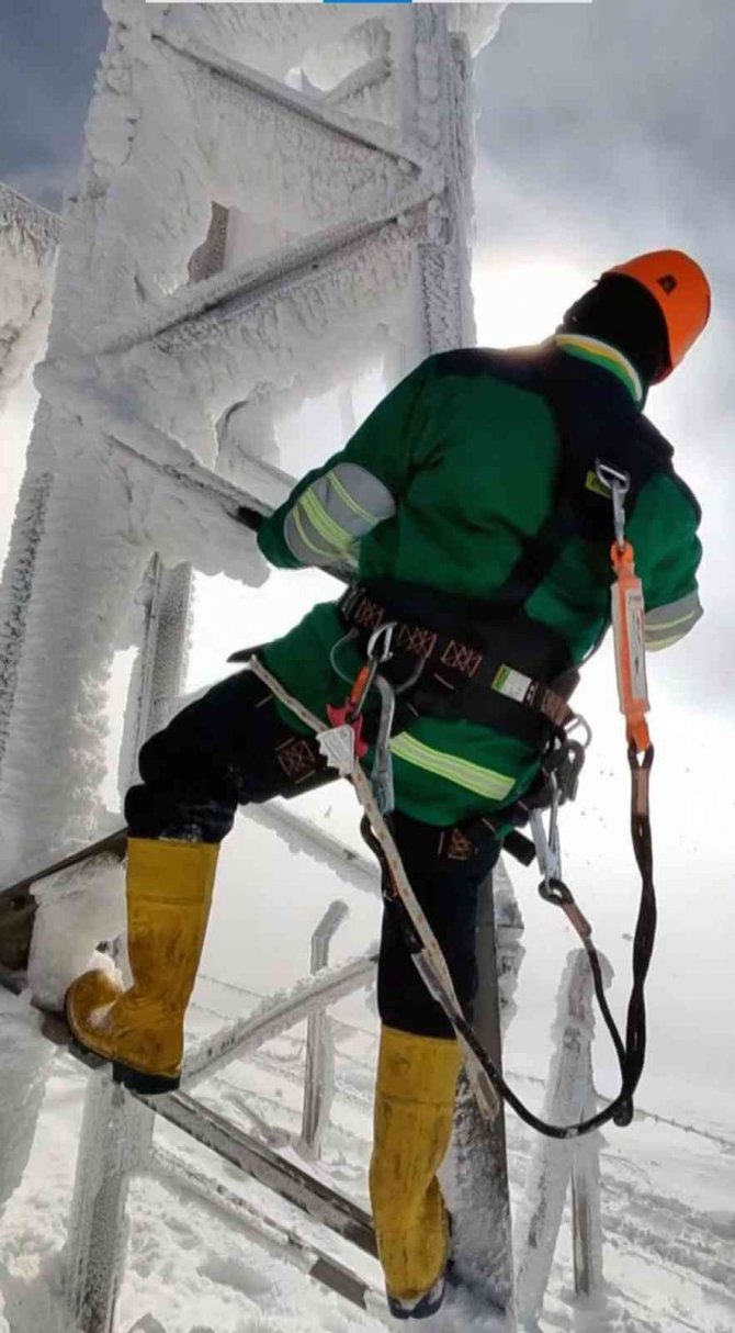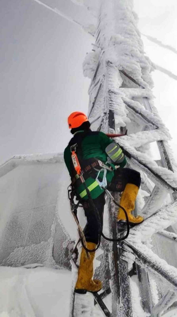İstasyonda görev yapan teknik personel, haftada bir gün nöbet değişimi yapıyor. Kış aylarında tamamen kar ile kaplı yolda kar paleti ile yaklaşık 1 saatlik yolculuk sonrası zirveye ulaşılıyor. Eksi 15 derecede kar fırtınası ve soğuk nedeniyle buzlanan direklerdeki buzlar teknik ekip tarafından kırılıyor.
