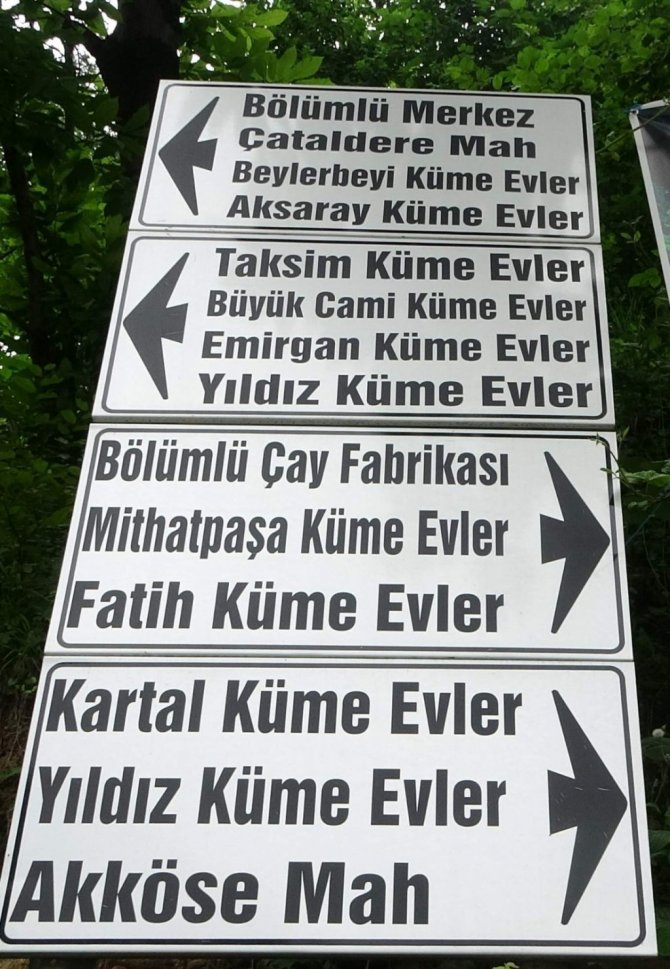 İlçenin Bölümlü mahallesinin giriş kısmına yerleştirilen mahalle isimlerinin yer aldığı tabelayı gören vatandaşlar bir anda kendilerini İstanbul'da sanıyor. Tabelada, "Emirgan, Taksim, Aksaray, Mithatpaşa, Yıldız, Beylerbeyi, Fatih, Kartal" gibi İstanbul'un semt isimleri yazması görenleri şaşırtıyor.