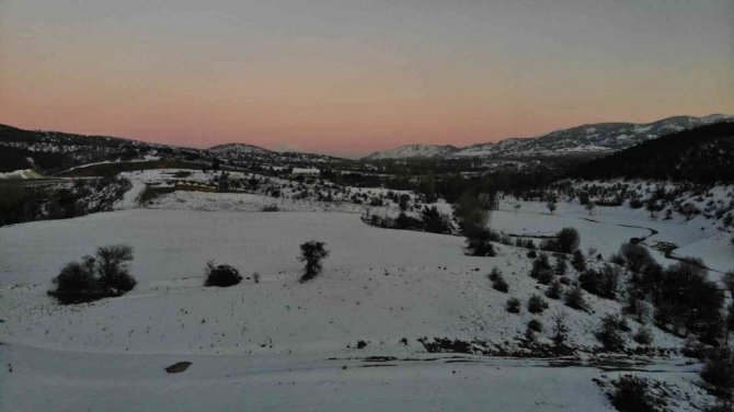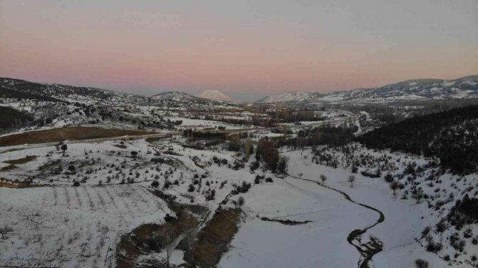 Burdur’da yüksek kesimlerde etkili olan kar yağışı eşsiz manzaralar oluşturdu