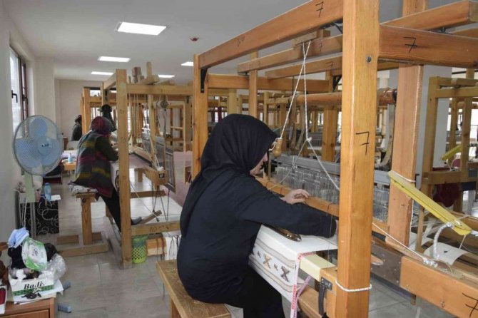 Burdurlu kadınlar yaklaşık 300 yıllık geçmişi olduğu bilinen geleneksel el sanatlarından Burdur Alaca dokumasını gelecek kuşaklara aktarıyor.
