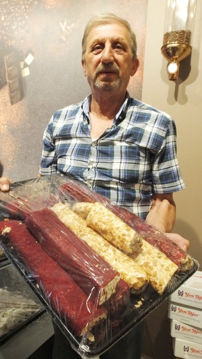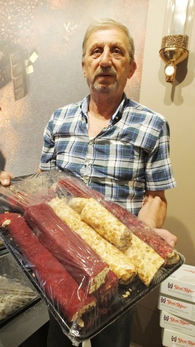 Burhaniye ilçesinde, İbrahim Orhan'ın satışını yaptığı Osmanlı Lokumu ilgi görürken, ürünün şifa kaynağı olduğu kaydedildi.