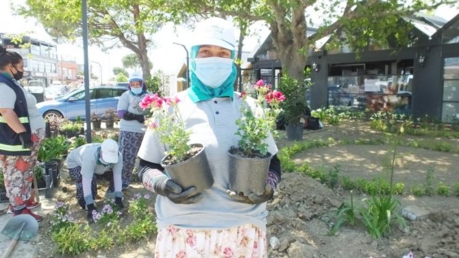 Burhaniye ilçesinde, Burhaniye Belediyesi yeşil alanları artırmak için yoğun bir çalışma içine girerken, yeni oluşturulan parklarda da çiçek dikimine...
