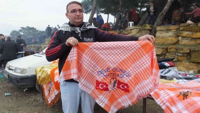 Burhaniye ilçesine bağlı Pelitköy Mahallesinde düzenlenen deve güreşleri büyük ilgi görürken, deveciler için hazırlanan hatıra atkılar da beğeni kazandı. Pelitköy Mahallesindeki güreşlerde stant açan Fatih Aykaç, Denizli Buldan da dokuttuğu atkıları devecilere sattı.