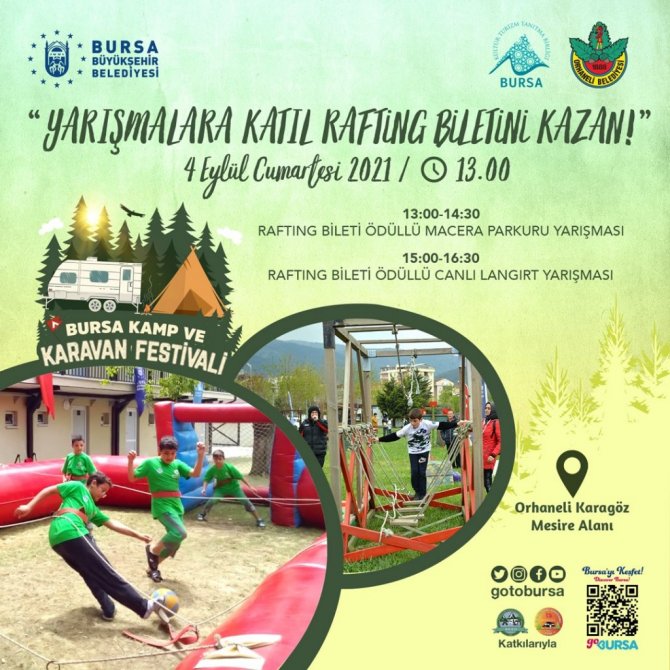 Bursa Büyükşehir Belediyesi, Orhaneli Belediyesi ve Bursa Kültür Turizm ve Tanıtma Birliği'nin girişimleri ile 4-5 Eylül 2021 tarihinde Orhaneli Karagöz Mesire Alanı'nda gerçekleştirilecek Bursa Kamp ve Karavan Festivali'nin programı belirlendi.