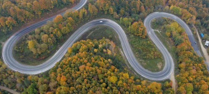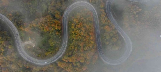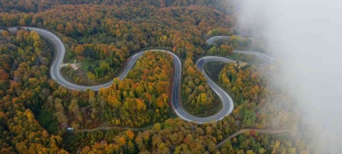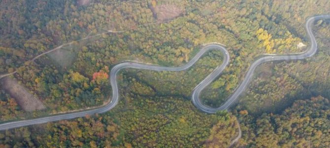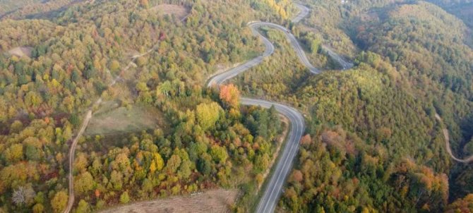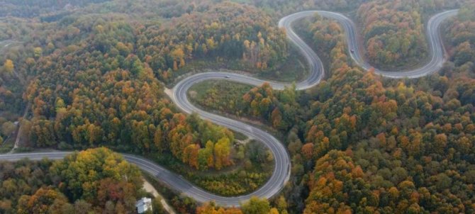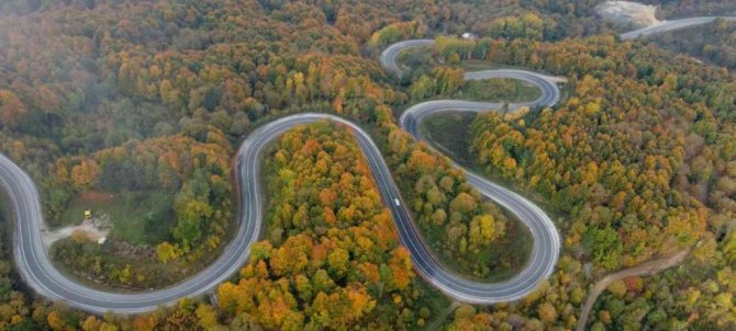 Abdülkadir Yazıcı'nın drone ile çektiği görüntülerde yeşille birlikte sarı ve kırmızının tonlarına bürünen ormanların eşsiz güzelliklerini bir kez daha gözler önüne serdi.