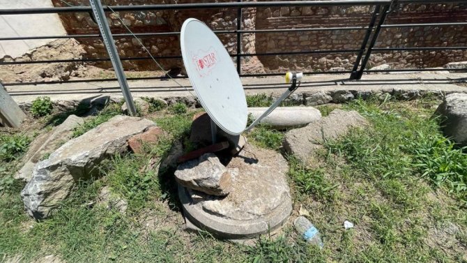 Tarih ve medeniyetin başkenti olan Unesco geçici miras listesinde bulunan İznik'te tarihi bir skandal yaşandı. 2 bin yıllık desenli sütunun üzerine çanak anten monte edildi, görenler şok oldu.