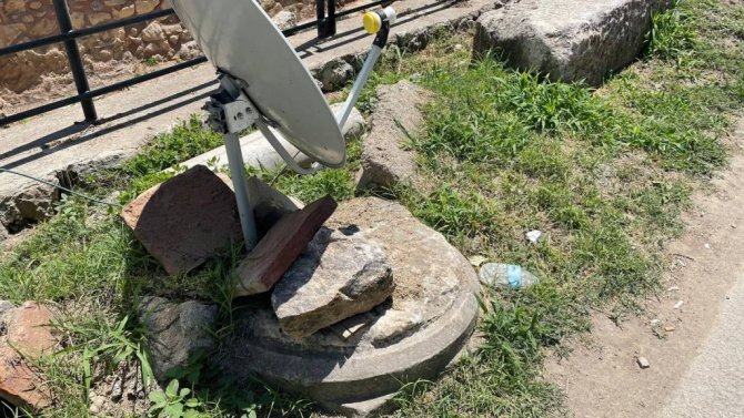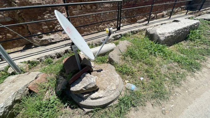 Bursa'nın İznik ilçesinde Lefke kapı mevkiinde bulunan 2 bin yıllık surların hemen dibinde bulunan desenli sütuna çanak anten monte edildi. Roma dönemi tarihi sütun taşın üzerinde çanak anteni gören yerli ve yabancı turistler manzara karşısında adeta şok oluyorlar. UNESCO geçici miras listesinde bulunan ve UNESCO ana listesine girmesi an meselesi olan İznik'te bu durumu gören vatandaşlar durumu müze müdürlüğüne bildirdi.